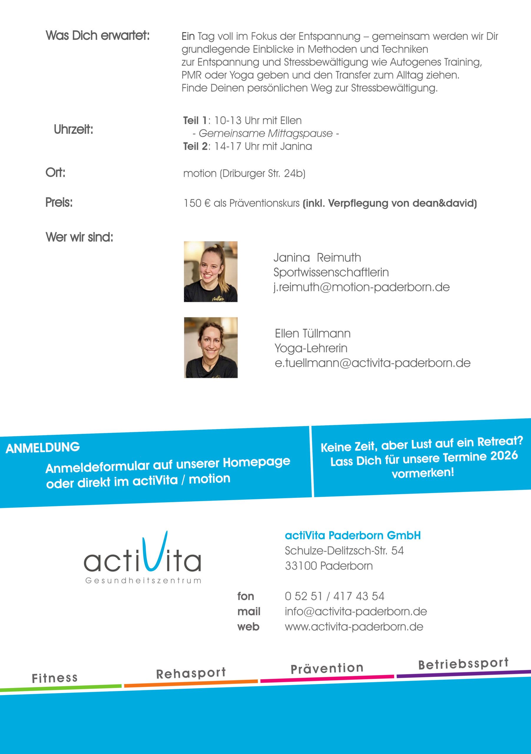 Dieser Workshop bietet Dir die Möglichkeit, verschiedene Entspannungstechniken kennenzulernen und auszuprobieren. So kannst du herausfinden, welche Methode am besten zu Dir passt und Dir hilft, Stress in Deinem Leben zu reduzieren.